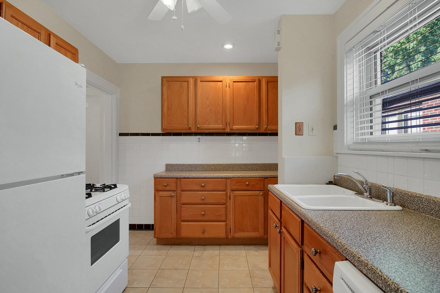 Outstanding and charming renovation of 2nd floor flat. Open staircase, wood-burning fireplace, refinished hardwood floors, kitchen with dishwasher & appliances, screened in balcony off kitchen, sun room off master bedroom, french doors, ceiling fans, window a/c's, radiator heat, washer/dryer provided.