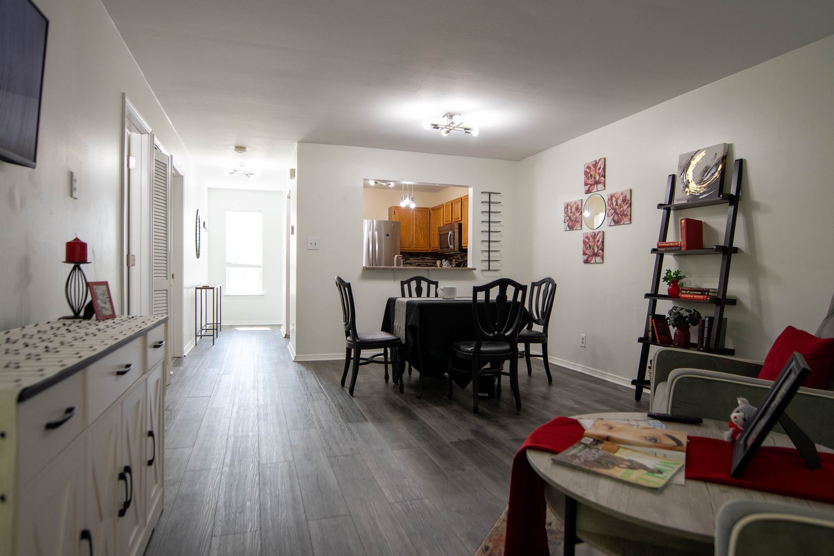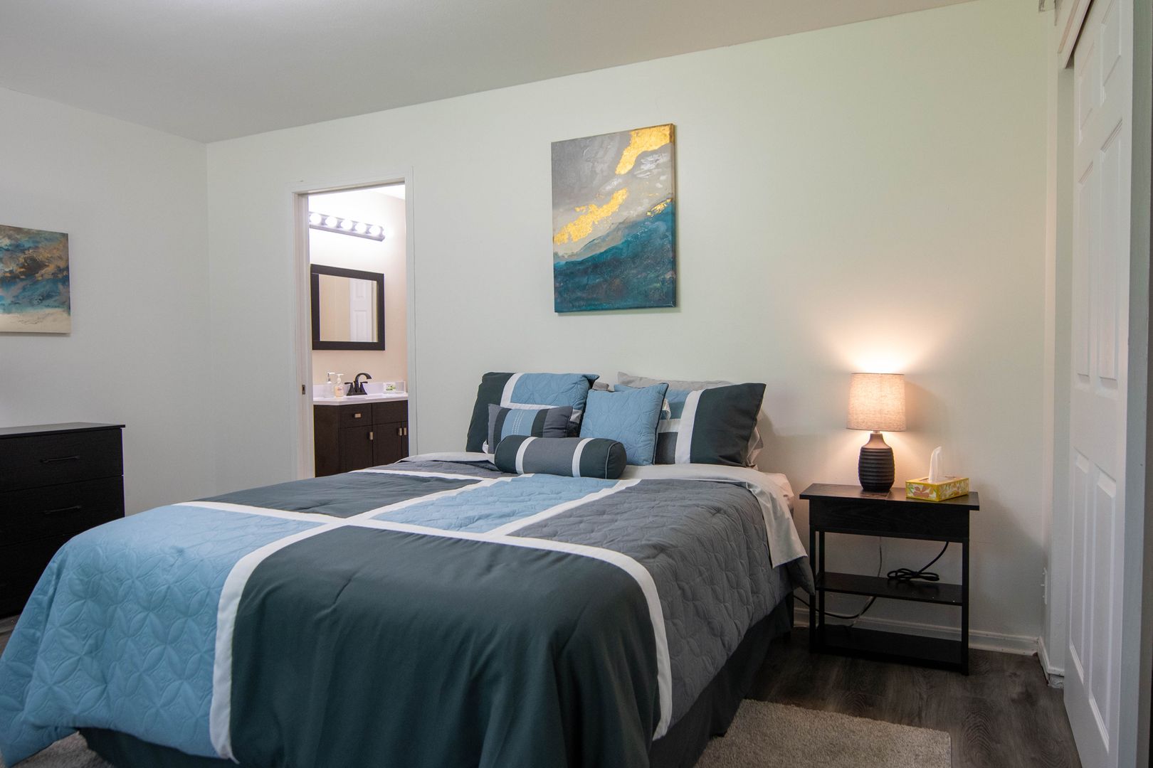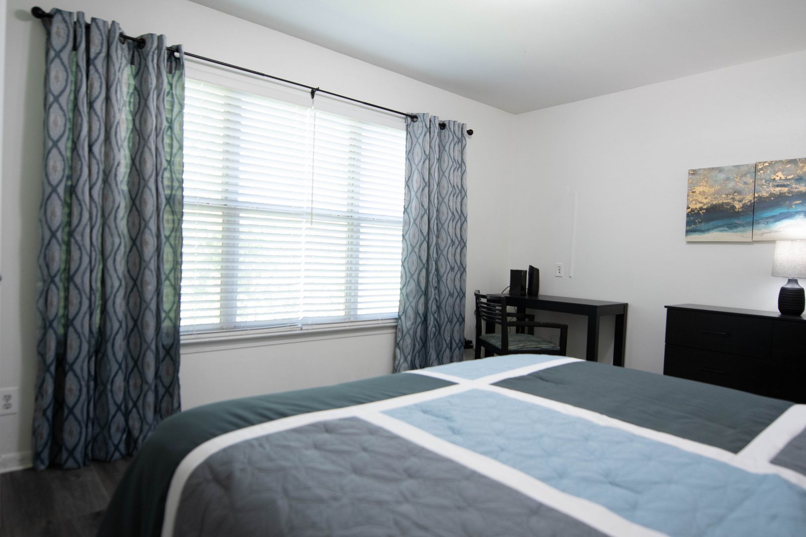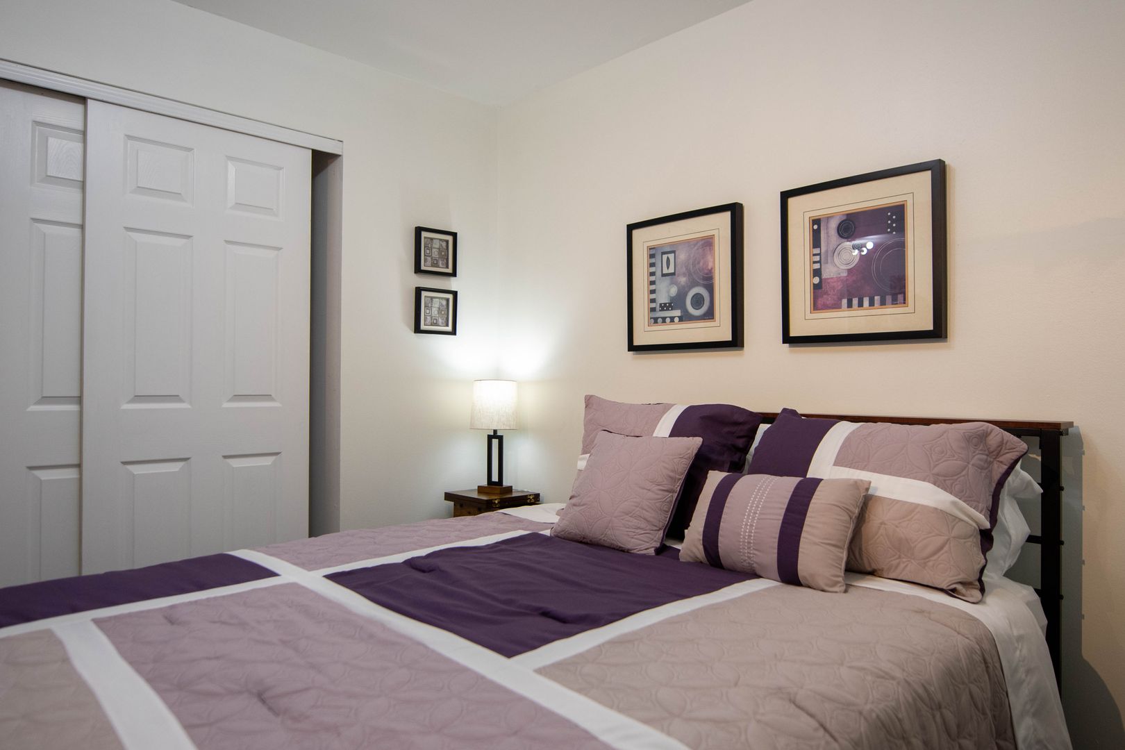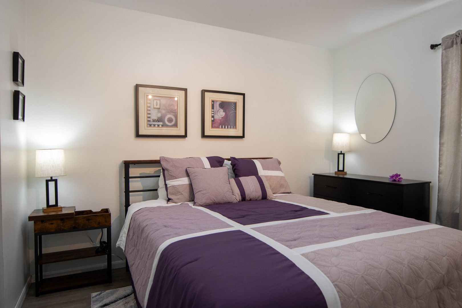 The unit is currently furnished with staging furniture which will be removed before your move in.