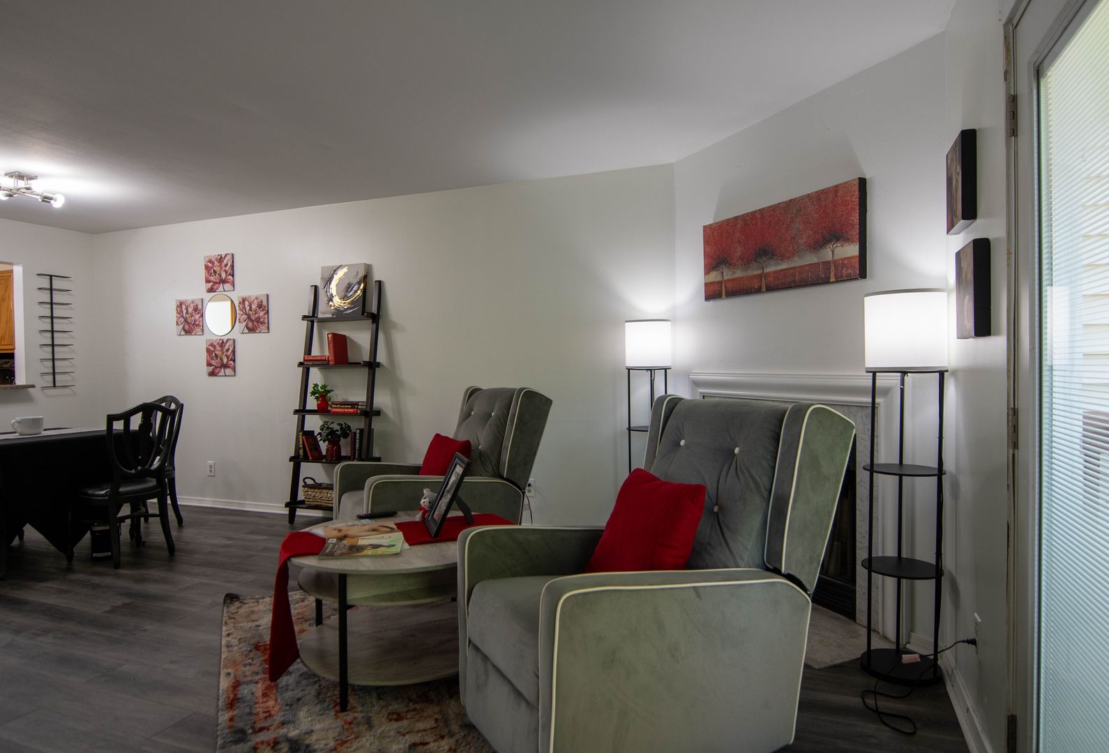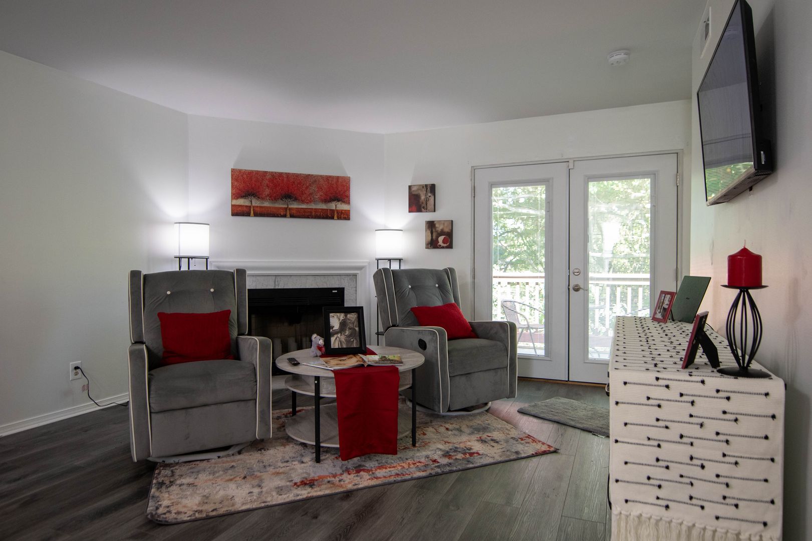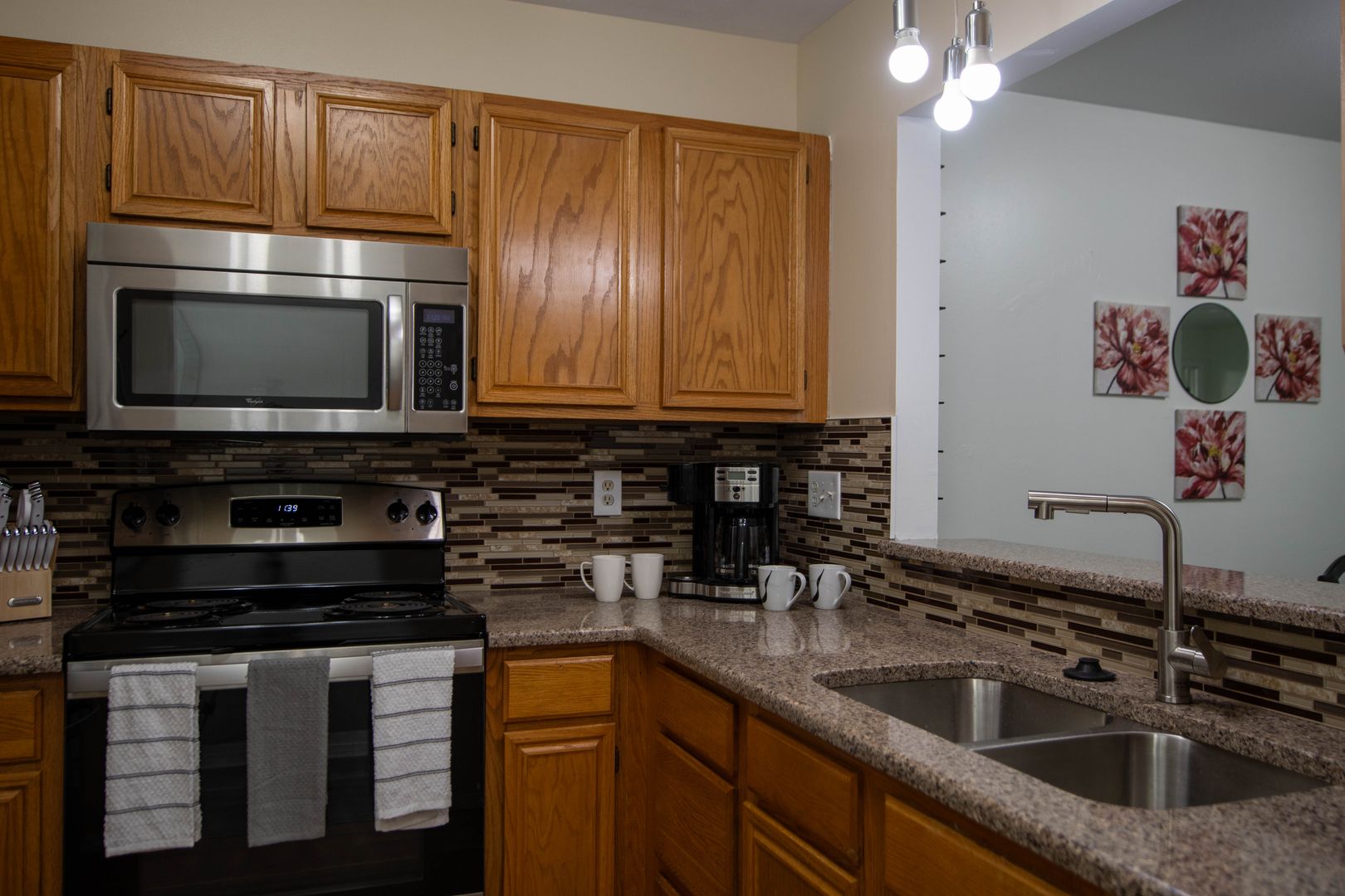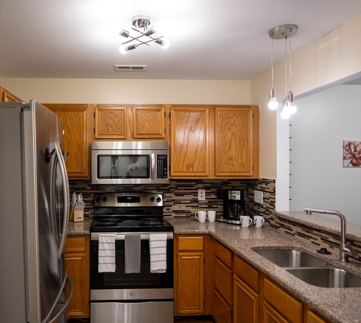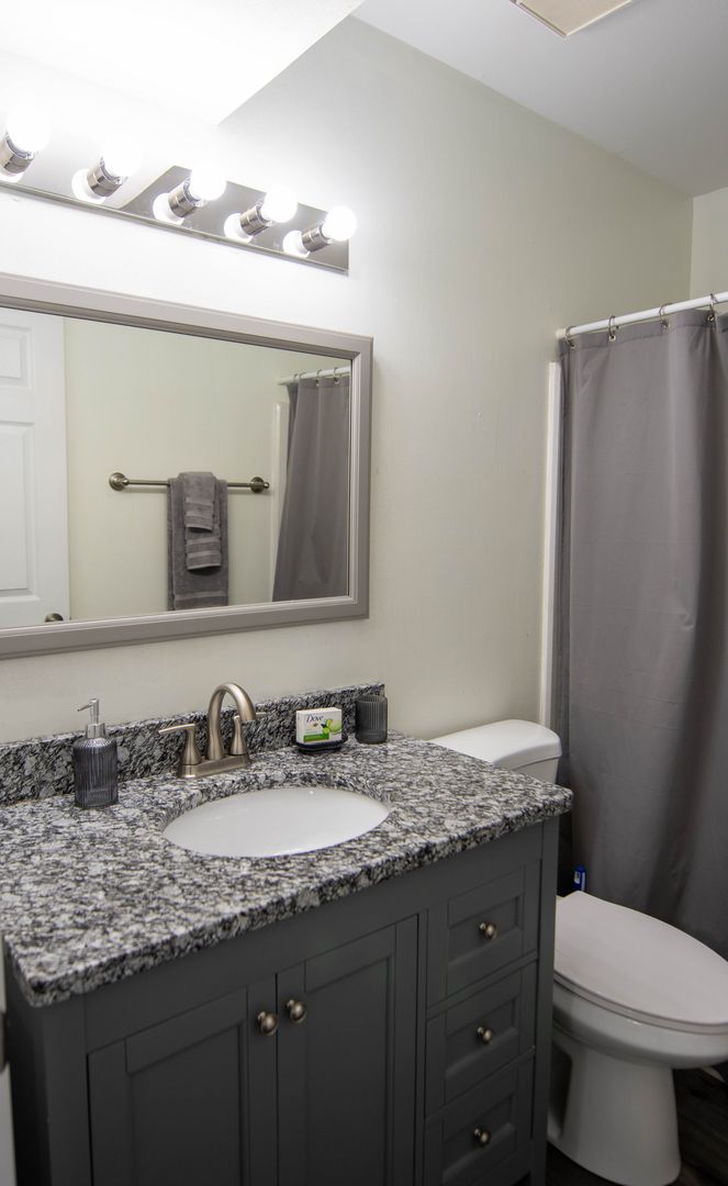 The unit is currently furnished with staging furniture which will be removed before your move in.