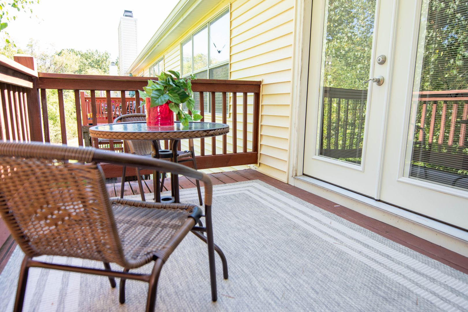 16295 Rose Wreath Ln. is a 2 bedroom, 2 full bath condo in North St. Louis County offering move-in-ready living with modern conveniences. This second floor unit features an open living area with a decorative fireplace, and a private deck. The primary bedroom includes an en suite bathroom with an in unit washer and dryer provided.