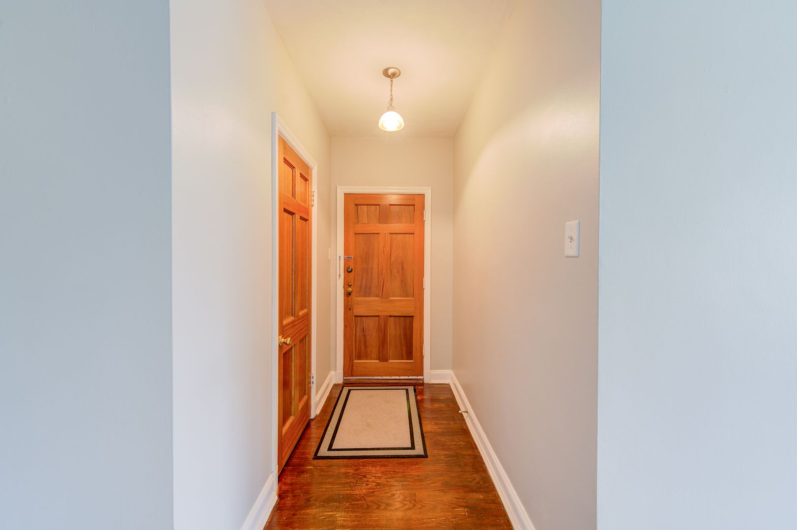 It features hardwood flooring in the living room, bedroom and hall. Ceramic in the bathroom. Vinyl in the kitchen. Brand new coin laundry set and washing station in the garage.