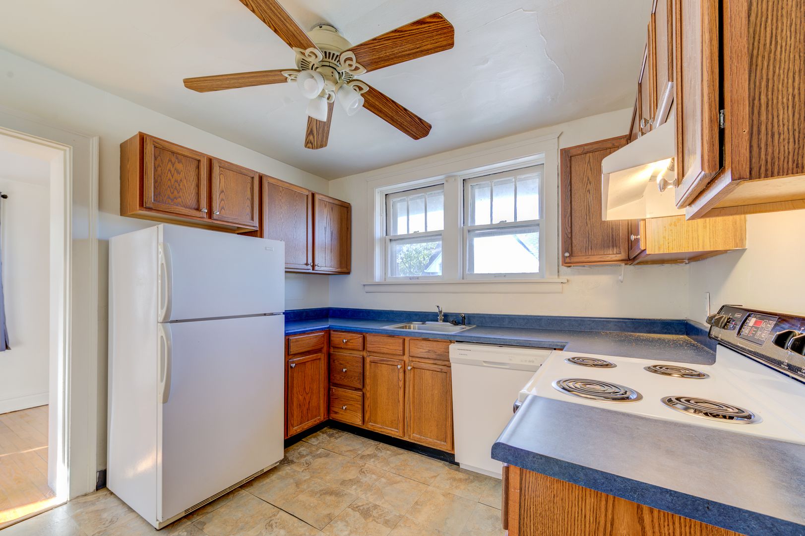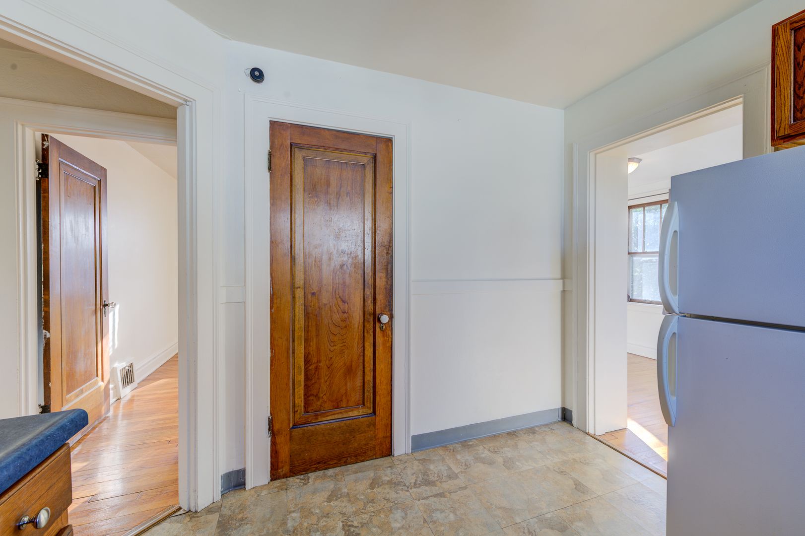 The apartment features hardwood floors, a fully equipped kitchen, front balcony, off street parking & washer/dryer connections in the unfinished basement.
